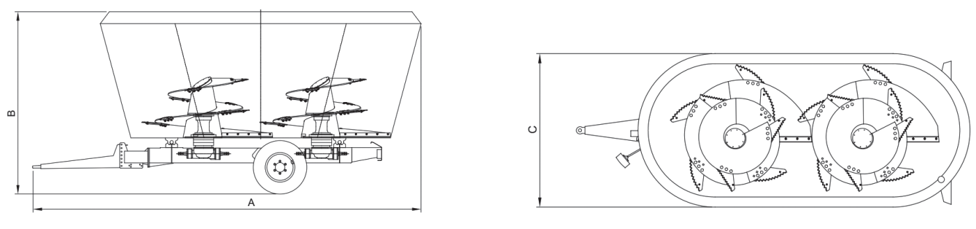 • Bilateral rear unloading belt width 0.80 m – removes the front chute (2 DE)
