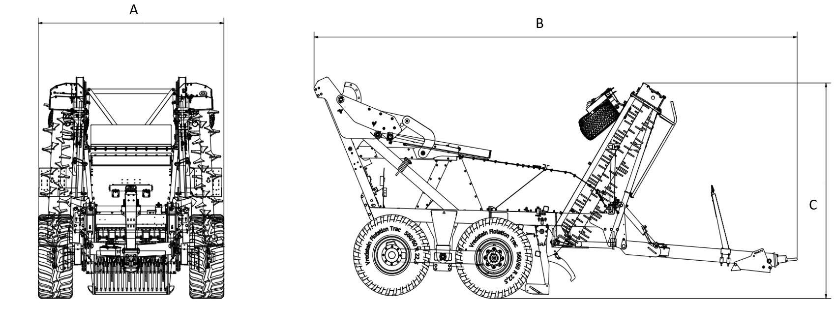 Les robustes dents en Hardox 500 peuvent tourner à des vitesses plus élevées que les dents en acier à ressort traditionnelles. La rotation plus rapide améliore le tamisage et l’enlèvement du sol, et elle permet également de mieux décomposer les matériaux organiques. Le diamètre du ramasseur est de 1,8 mètre et il tourne à 80 tr/min, tandis que les dents tournent à 125 tr/min.